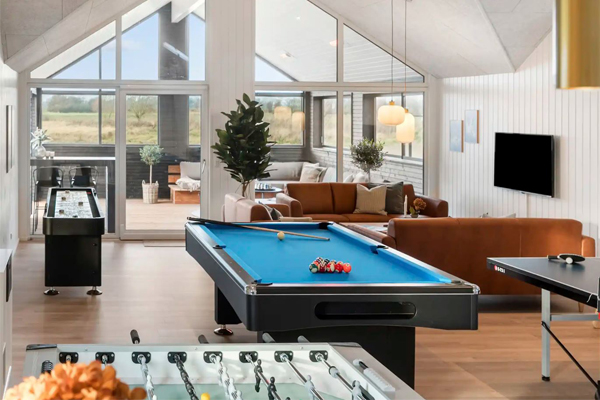 Et sommerhus med aktivitetsrum giver masser af sjov og underholdning for både børn og voksne. Her kan man udfordre hinanden i bordfodbold, pool eller andre spil og skabe hyggelige stunder sammen. Aktivitetsrummet er perfekt til både regnvejrsdage og lange aftener med grin og konkurrence. Et sommerhus med aktivitetsrum gør ferien ekstra livlig og fuld af gode oplevelser.
